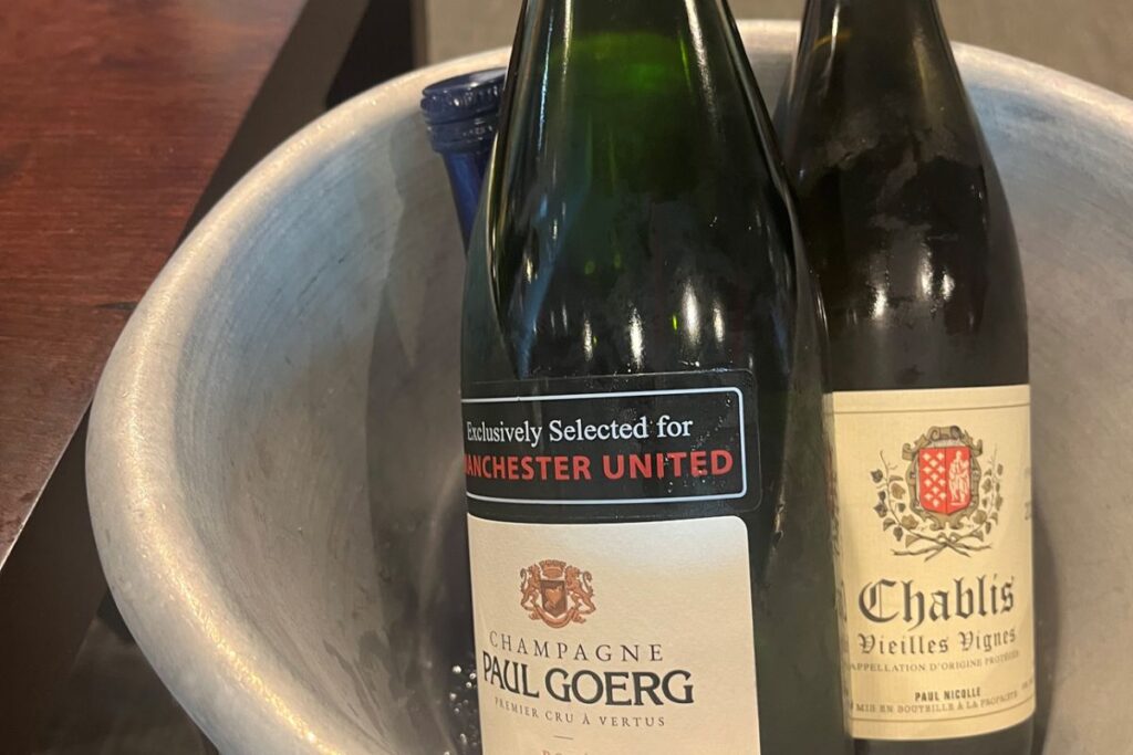 We arrived through the VIP entrance and up the stairs to ‘The Gallery’ where we were greeted with champagne at our private table. The welcome was warm and personal, with engaging staff guiding us every step of the way. Paul, the room manager and a long-standing connection, ensured everything ran seamlessly, embodying the high standards of Manchester United’s hospitality.